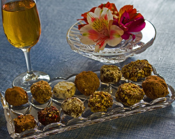 If you want to show your love for that special person, make your own chocolate truffles. Mixing a little labor with your sentiment is always a nice touch. And surprise him/her with a filling of blue cheese. (Yes, it works. See below) Accompanied by a nice Malmsey Madeira or Tawny Port and you are all set for Valentine’s Day.