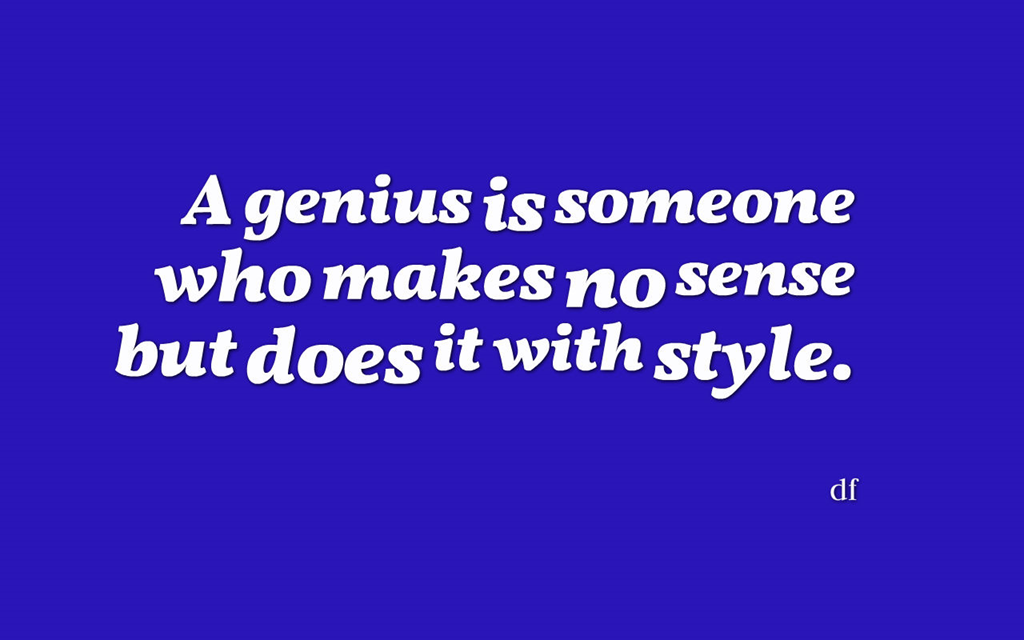 Genius September 5, 2016 Dwight Furrow Aphorisms Leave a comment Share this: Click to share on X (Opens in new window) X Click to share on Facebook (Opens in new window) Facebook Click to share on Reddit (Opens in new window) Reddit Click to share on Tumblr (Opens in new window) Tumblr Click to share on LinkedIn (Opens in new window) LinkedIn Like Loading... Related