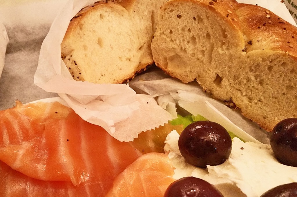 New York bagels are different and no it’s probably not the water that makes them unique. First of all they’re boiled before being baked. That distinguishes them from 90% of the bagels you find elsewhere which are steamed and thus don’t develop the proper crust. The decisive factor is probably the fact they’re boiled in a malt solution giving them a very mild malty flavor that you won’t find at Einstein’s. At good New York bagel shops they are also fresh out of the oven, still warm if your timing is good. At any rate a proper New York bagel has a little crunch from the outer crust but is tender but chewy within. And for heaven’s sake don’t get them toasted—the New York food police will have you arrested for disparagement. And I can’t resist good belly lox to play the accompaniment. Esse E Bagel has been doing this since 1976. They have it down. Just be prepared to stand in line for a half hour.