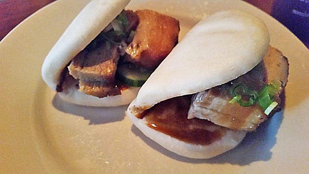 The dish is a pillowy, Chinese-style boa bun folded and stuffed with flavorful, slow roasted pork belly, dressed with a thin layer of hoisin sauce and topped with scallions and quick-cured cucumber. The cool crunch of the cucumber and the sweet hoisin sauce cut the fat and salt of the pork belly. It’s an inspired dish.