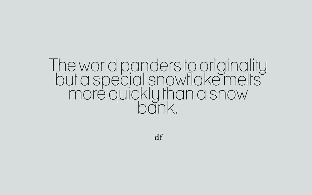 Survival November 8, 2016 Dwight Furrow Aphorisms Leave a comment Share this: Click to share on X (Opens in new window) X Click to share on Facebook (Opens in new window) Facebook Click to share on Reddit (Opens in new window) Reddit Click to share on Tumblr (Opens in new window) Tumblr Click to share on LinkedIn (Opens in new window) LinkedIn Like Loading... Related