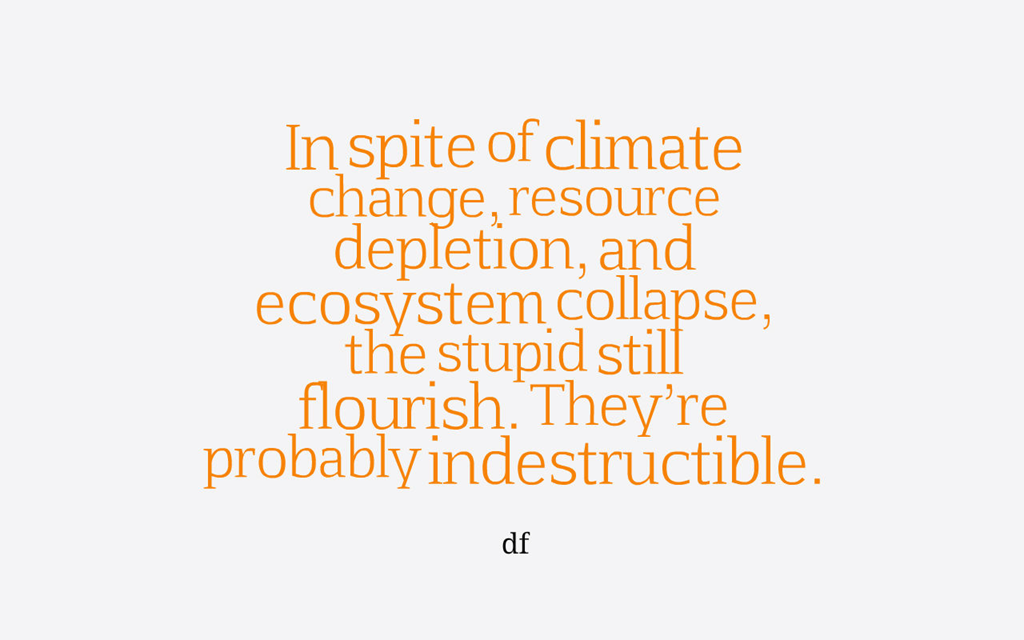 Eternal November 10, 2016 Dwight Furrow Aphorisms Leave a comment Share this: Click to share on X (Opens in new window) X Click to share on Facebook (Opens in new window) Facebook Click to share on Reddit (Opens in new window) Reddit Click to share on Tumblr (Opens in new window) Tumblr Click to share on LinkedIn (Opens in new window) LinkedIn Like Loading... Related