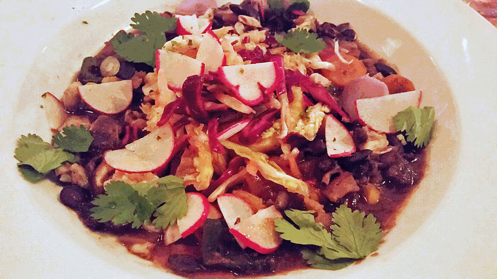 A stew of various vegetables, black beans and polenta was so well balanced it felt weightless in the mouth. Despite the sheer number of ingredients each component was distinct and perfectly cooked. The burger made from grass fed beef topped with bacon, goat cheese, spinach and alioli was bursting with flavor.