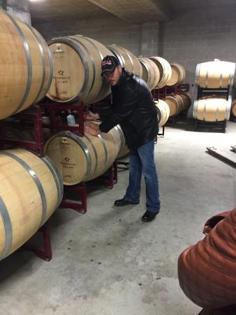 Most of the physical labor in a winery involves moving the wine from container to container and preparing containers for their next occupation.