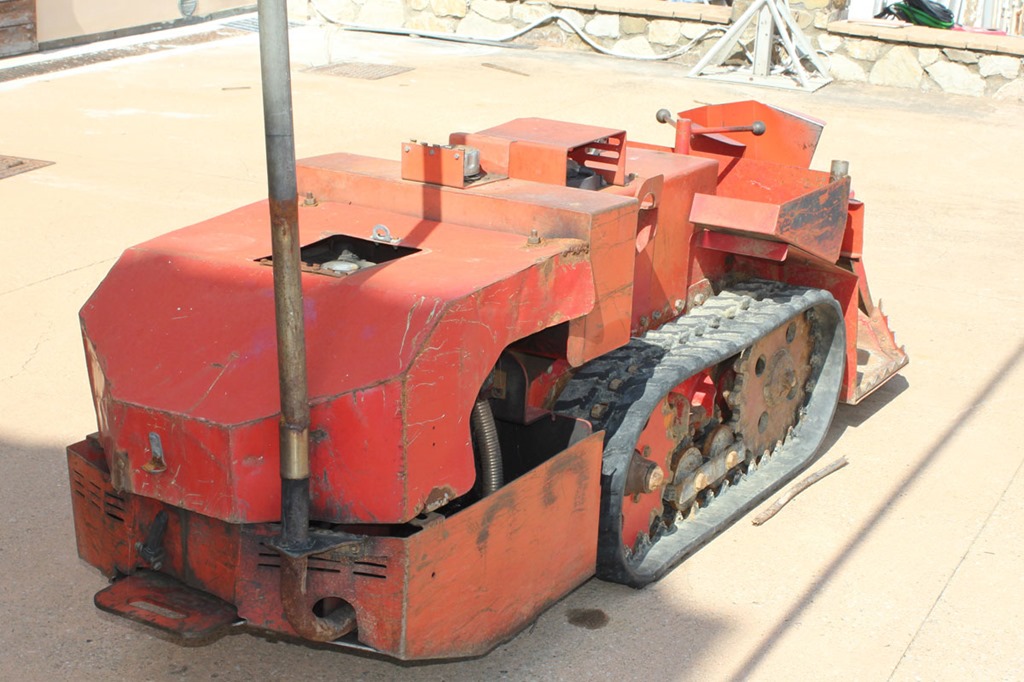 gravity-flow production system with unique, two chamber fermentation tanks and his own custom tractors that fit between the rows of their tightly spaced vines. The theory behind his viticulture is that hi-density planting, 7000-11000 plants per acre, will force the plants to compete driving the rootstocks deeper into soil seeking water and minerals. That high density planting makes this specialized tractor necessary in order to do the vineyard work.