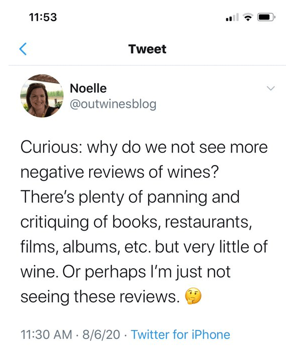 Noelle at Outwines blog launched an interesting discussion thread on Twitter.